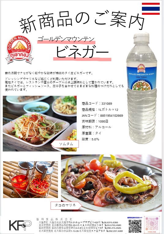 タイ産のビネガー(蒸留酢)と、同じくタイ産の細れんこん水煮です。
