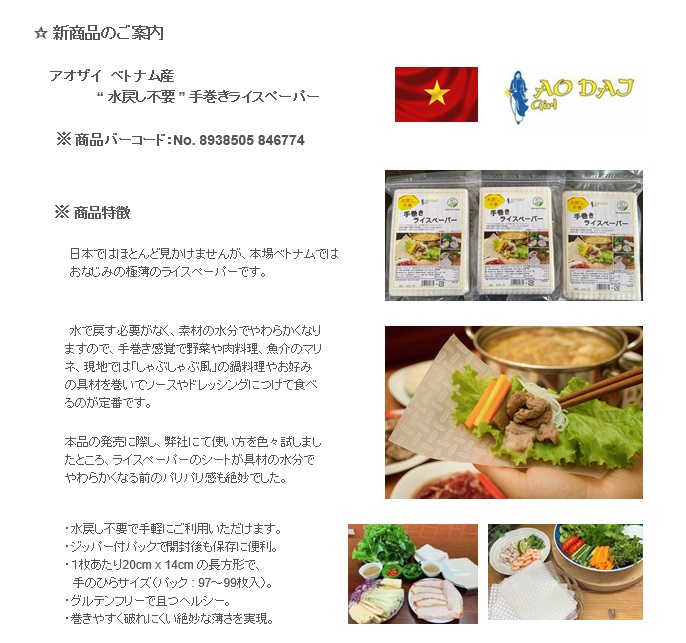 【商品】 アオザイ 水戻し不要!手巻きライスペーパー300g